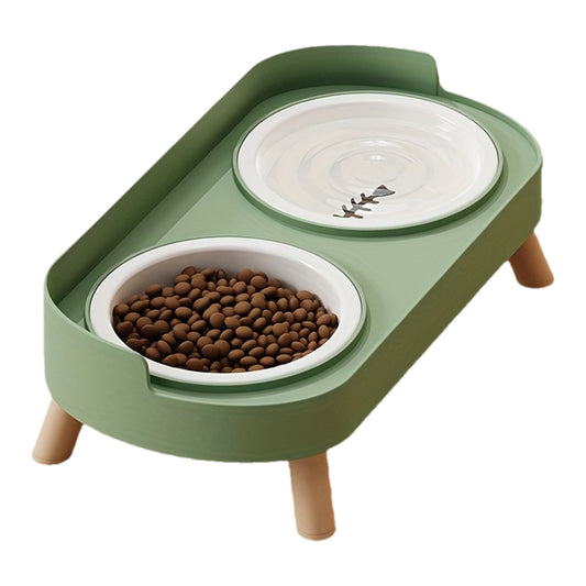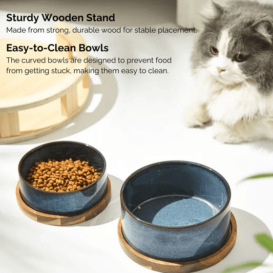 Marmeren, Keramische Honden- en Kattenvoerbak met Houten Standaard