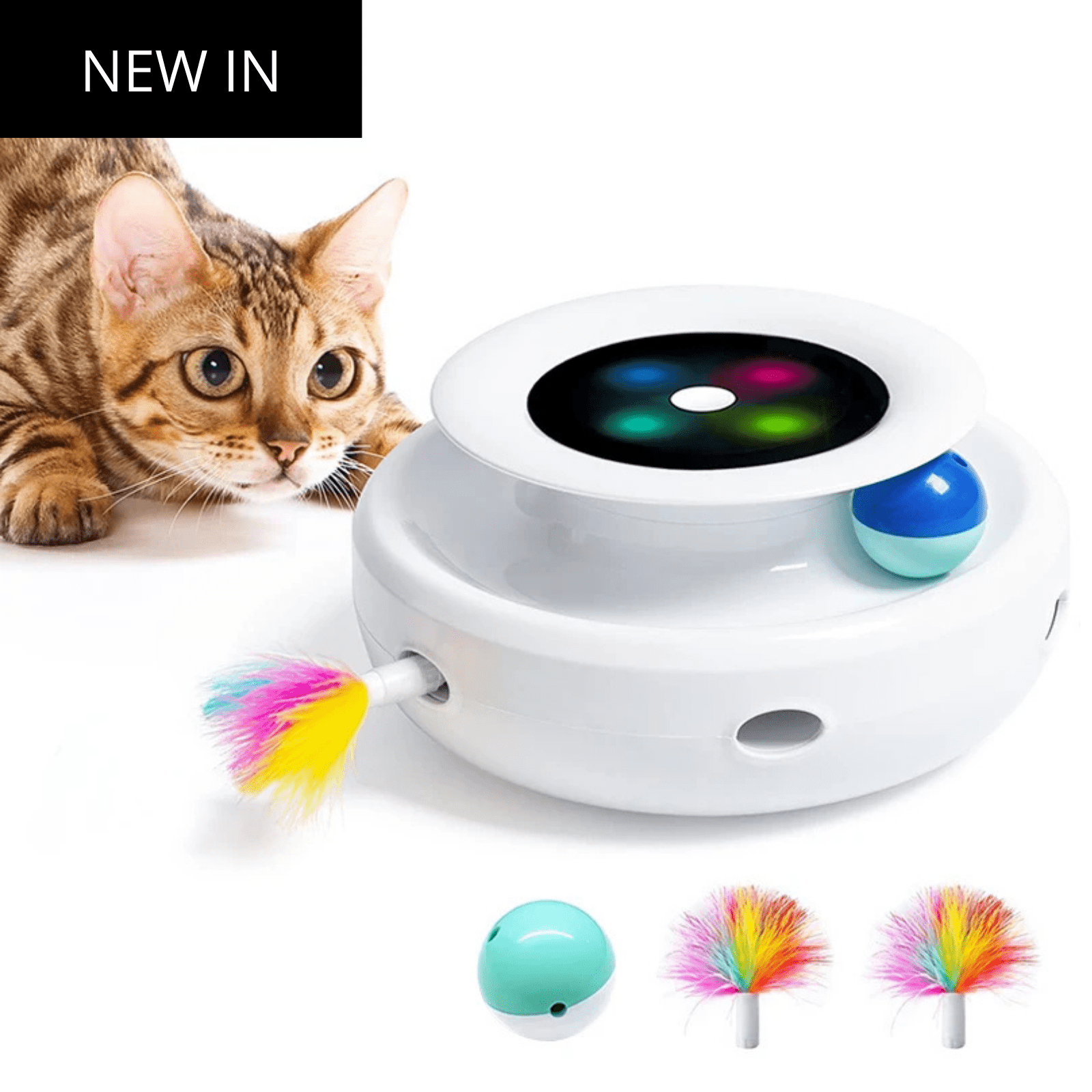 Dit elektronische speelgoed is speciaal ontworpen om katten én kleine honden mentaal én fysiek te prikkelen. Dankzij 5 afwisselende speelmodi blijft het spel verrassend en uitdagend, terwijl de automatische veer en ronddraaiende bal je huisdier uitnodigen tot spelen, jagen en springen.