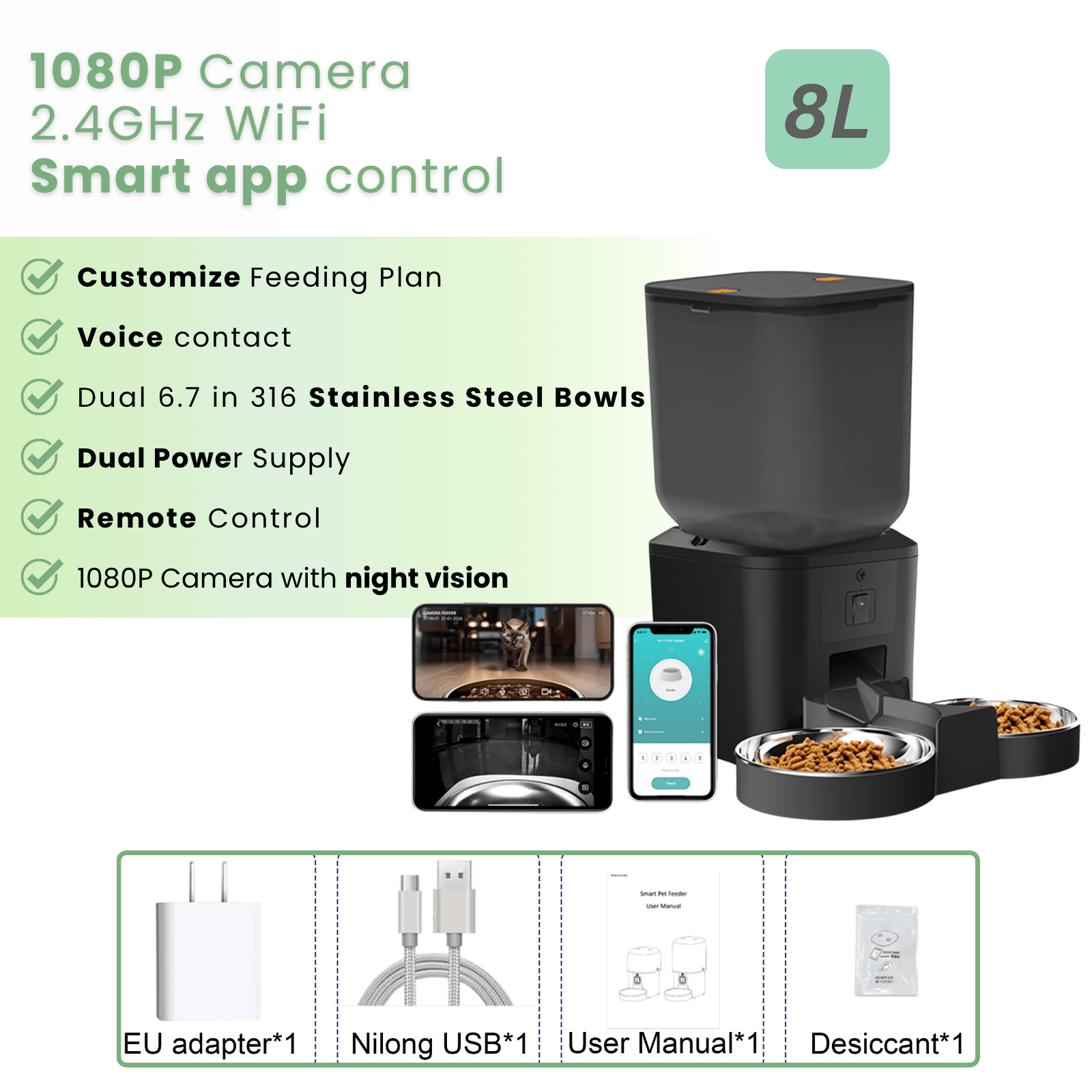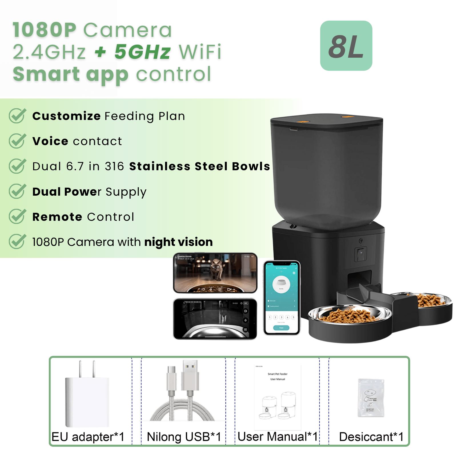 Deze 8L Automatische Kattenvoer Dispenser met Camera biedt jouw huisdier dagelijkse zorg, gemak en liefde - en jou complete gemoedsrust.