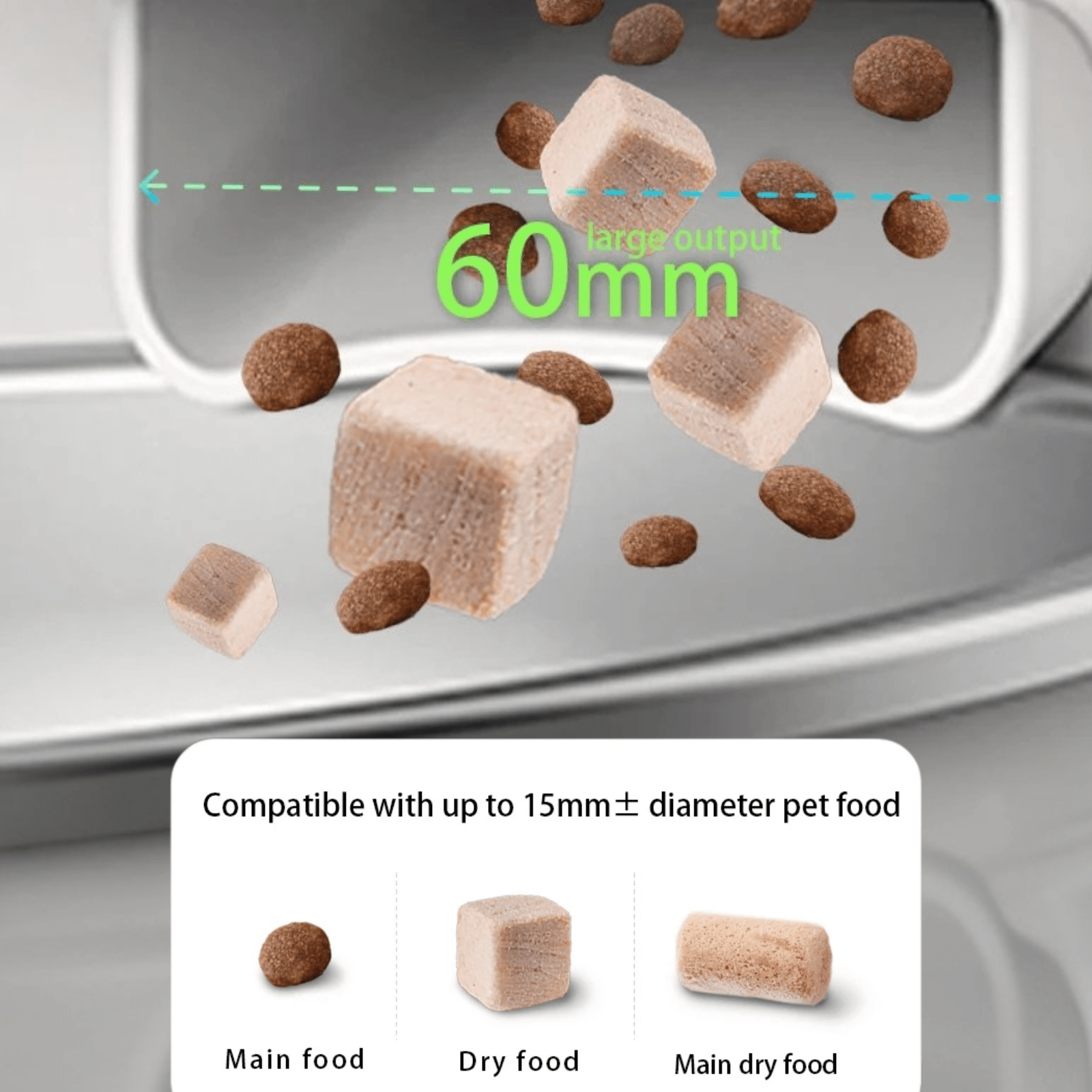Automatisch en flexibel voeren: Stel tot 10 maaltijden per dag in met 1–50 porties per maaltijd (±7 g per portie), volledig aanpasbaar aan de eetbehoeften van jouw kat of hond.