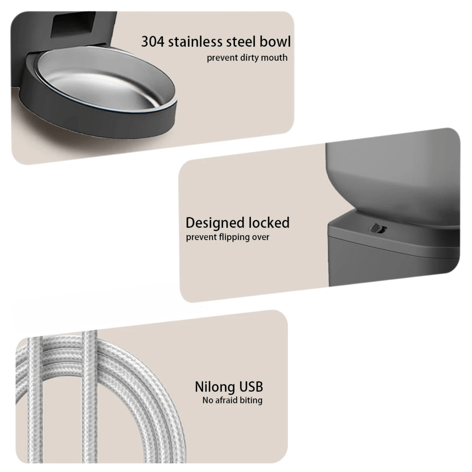 Hygiënisch ontwerp: Gemaakt van voedselveilig ABS met een roestvrijstalen voerbak (Ø 17 cm) die makkelijk schoon te maken is.