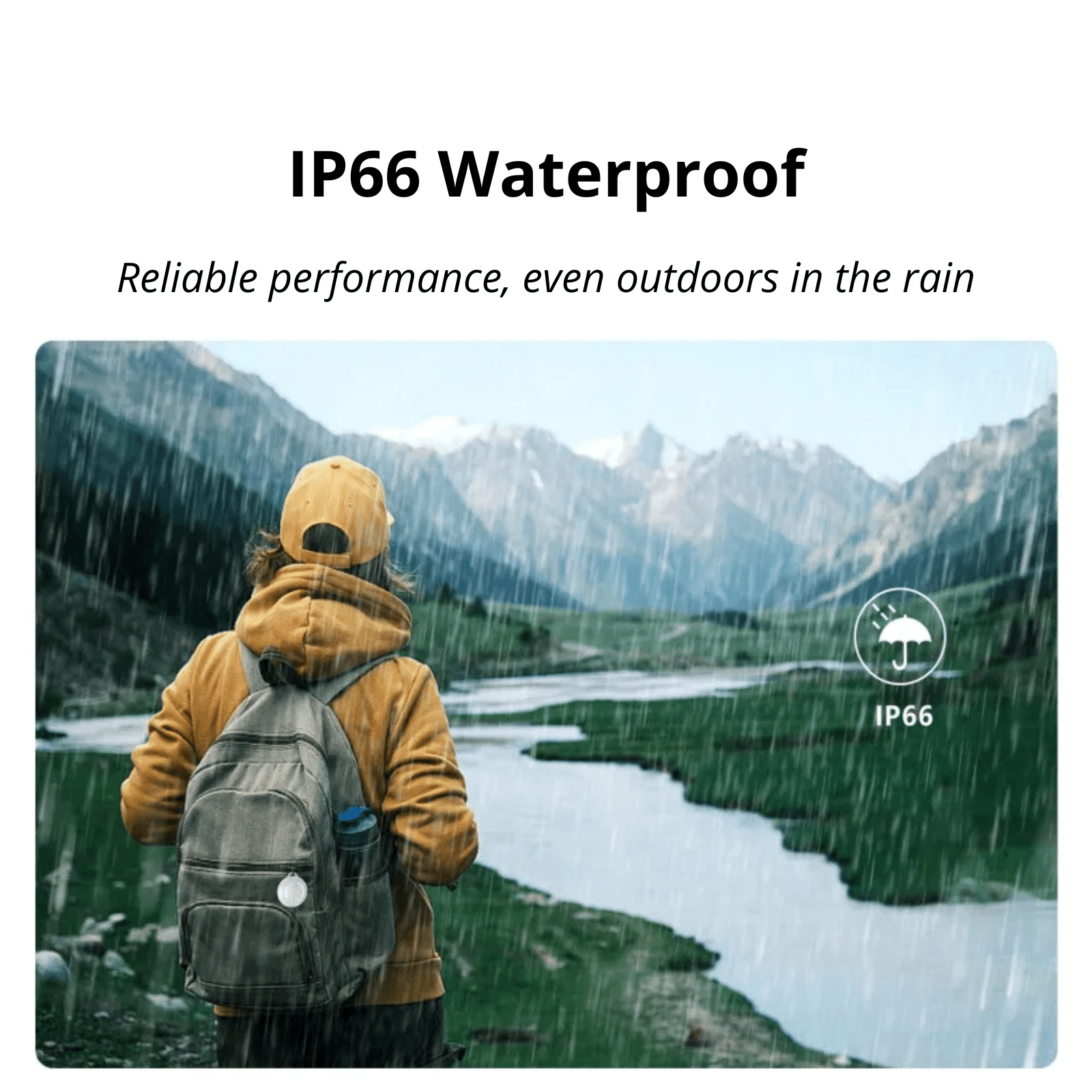 IP66 Waterbestendig: De tracker is IP66 gecertificeerd, wat betekent dat hij beschermd is tegen sterke waterstralen en stof. Dit zorgt ervoor dat hij functioneel blijft, zelfs in ruwe weersomstandigheden, en bestand is tegen spatten en regen.