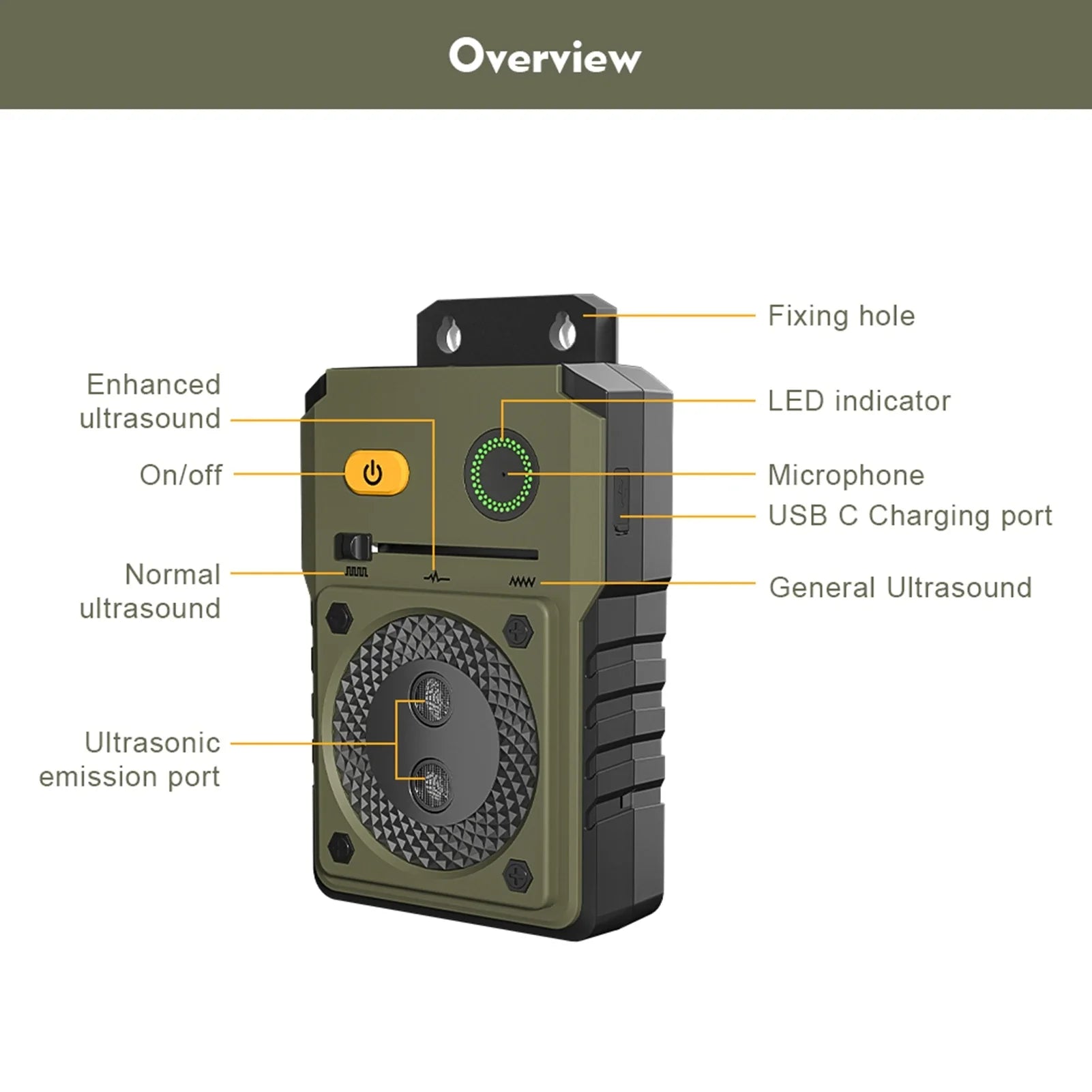 Eenvoudige installatie: Monteer het apparaat aan een boom, muur of schutting – werkt direct na inschakeling.
