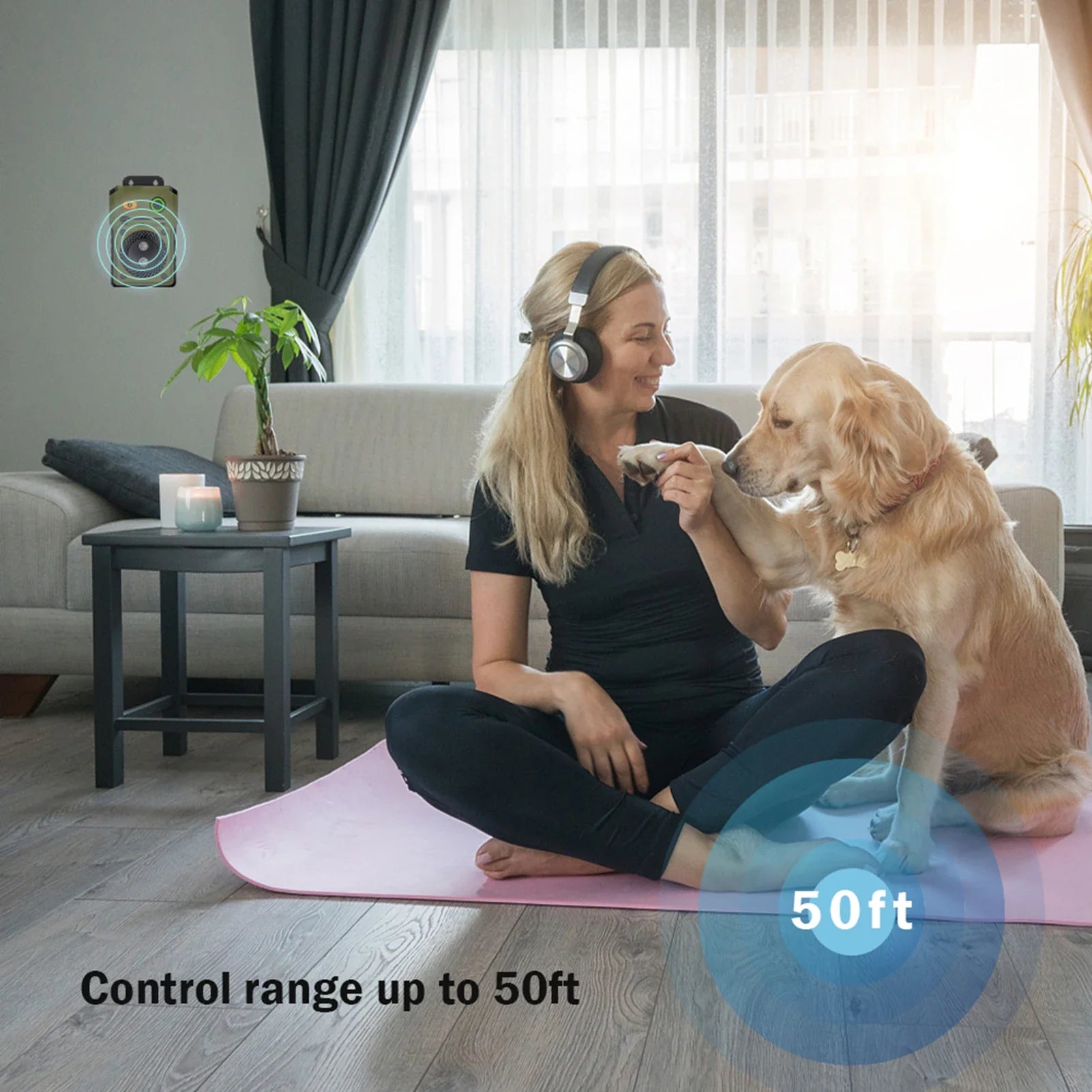 Het compacte, IPX4-waterdichte ontwerp maakt de BarkGuard geschikt voor zowel binnen als buiten. Hang hem eenvoudig aan een muur, boom of schutting – ideaal voor elk seizoen. Met een bereik tot 50 ft (15 meter) dempt hij niet alleen het geblaf van jouw hond, maar ook dat van naburige honden, zodat jij kunt genieten van een rustige en ontspannen omgeving.