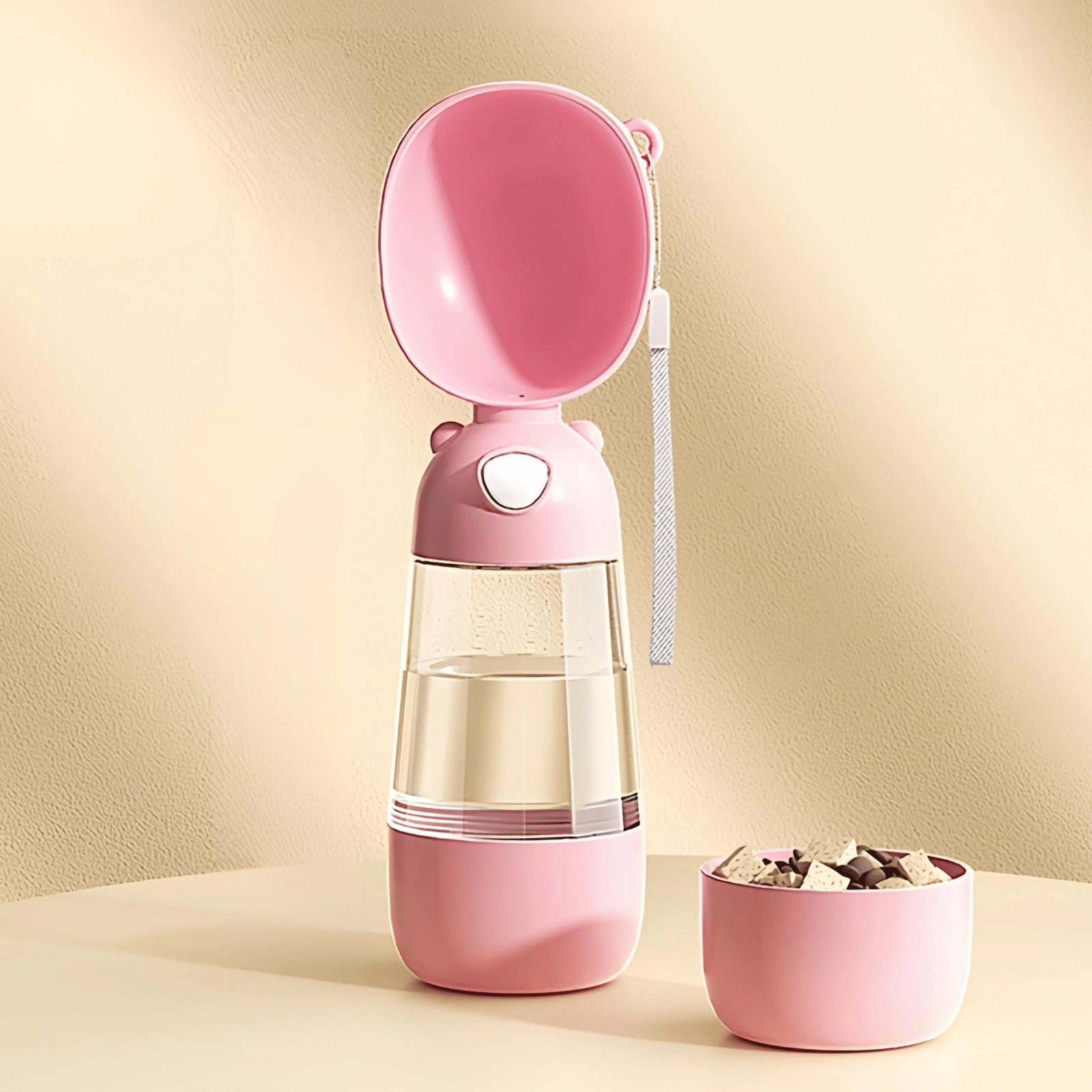Of je nu een lange wandeling maakt of een dagje weg gaat, deze draagbare reisfles biedt alles wat je nodig hebt om je huisdier gehydrateerd en gevoed te houden – waar je ook bent.