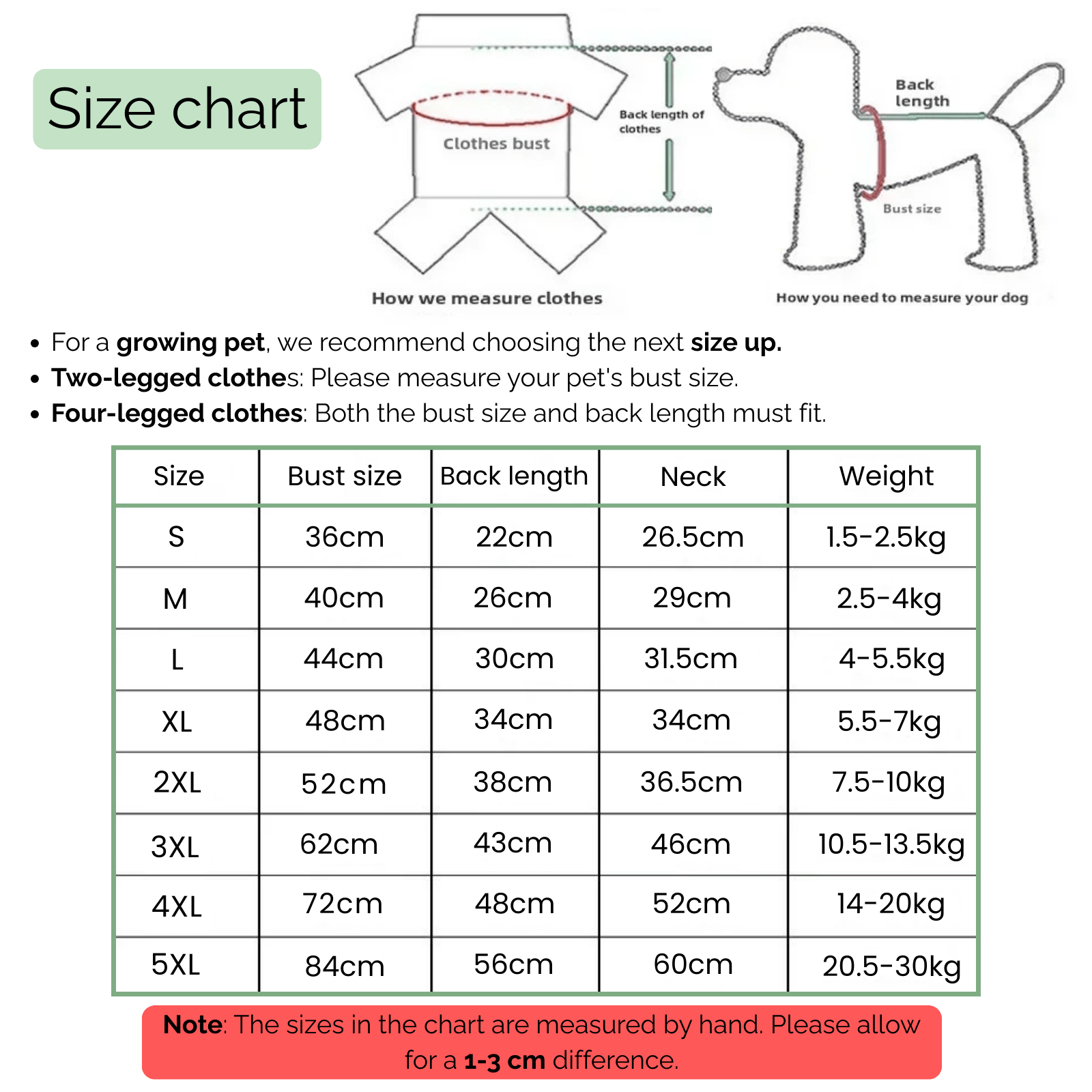 Deze jas is verkrijgbaar in verschillende maten, geschikt voor diverse rassen. Meet de borstomvang en ruglengte van je hond zorgvuldig op om de juiste maat te kiezen.