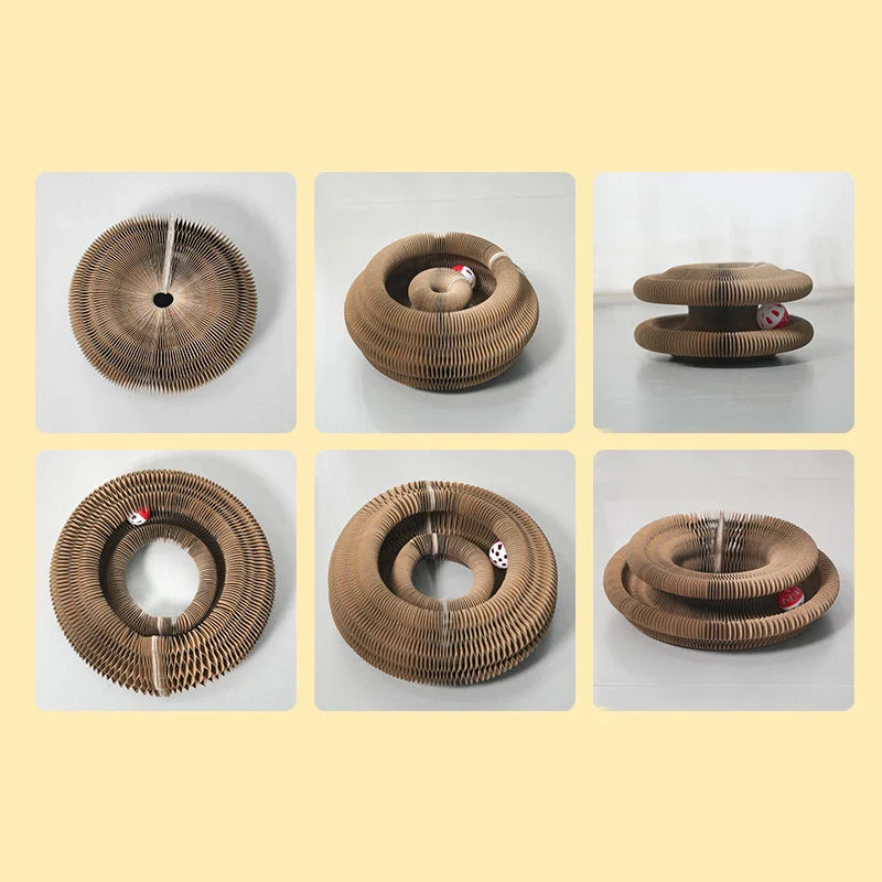 Dankzij het gegolvde honingraatontwerp is het krabspeelgoed extra stevig en duurzaam, ideaal voor dagelijks gebruik. De structuur is gemaakt van dik, hoogwaardig golfkarton dat zacht is voor de klauwen, terwijl het tegelijkertijd voorkomt dat je kat aan meubels gaat krabben. De ingebouwde bal rolt rond in een speciaal kanaal en daagt je kat uit om te jagen en te spelen – een perfecte stimulans voor natuurlijke jachtinstincten.