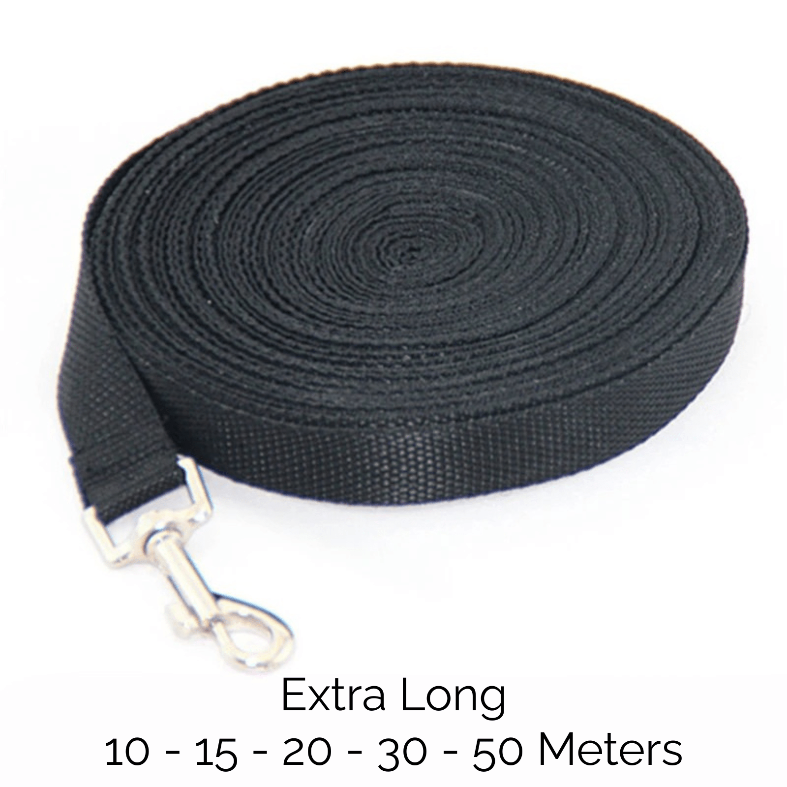Deze extra lange hondenriem van duurzaam nylon is ideaal voor puppytraining, wandelen en vrije beweging tijdens het uitlaten. Verkrijgbaar in lengtes van 1,5 tot maar liefst 50 meter – perfect voor alles van basiscommando's tot veilig ravotten op afstand. De riem is 2 cm breed en geschikt voor kleine, middelgrote en grote honden