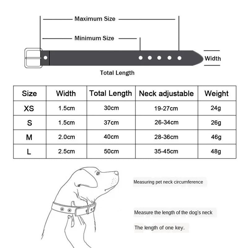 Deze duurzame halsband is gemaakt van hoogwaardig kunstleer en afgewerkt met metalen details voor een stoere én schattige uitstraling. Dankzij de verstelbare sluiting zit de halsband altijd comfortabel en veilig, of je nu een Chihuahua, Pug of ander ras hebt.