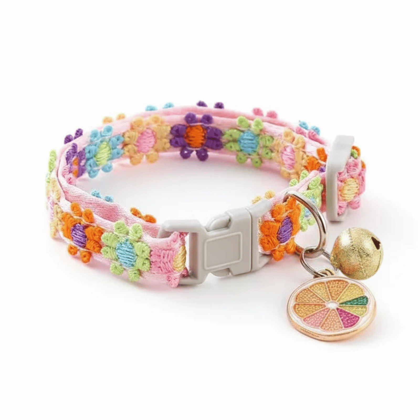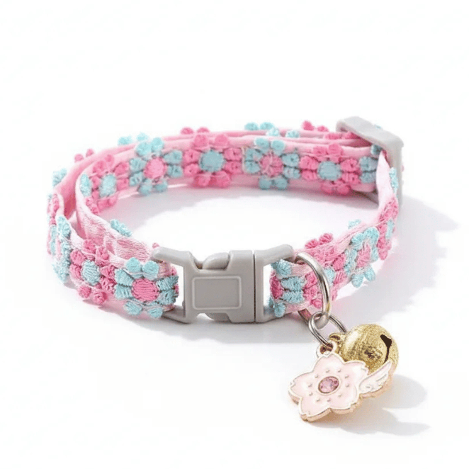 PawBell Kattenhalsband – Verstelbaar Nylon Halsbandje Kat met Bel - Bloemenpatroon