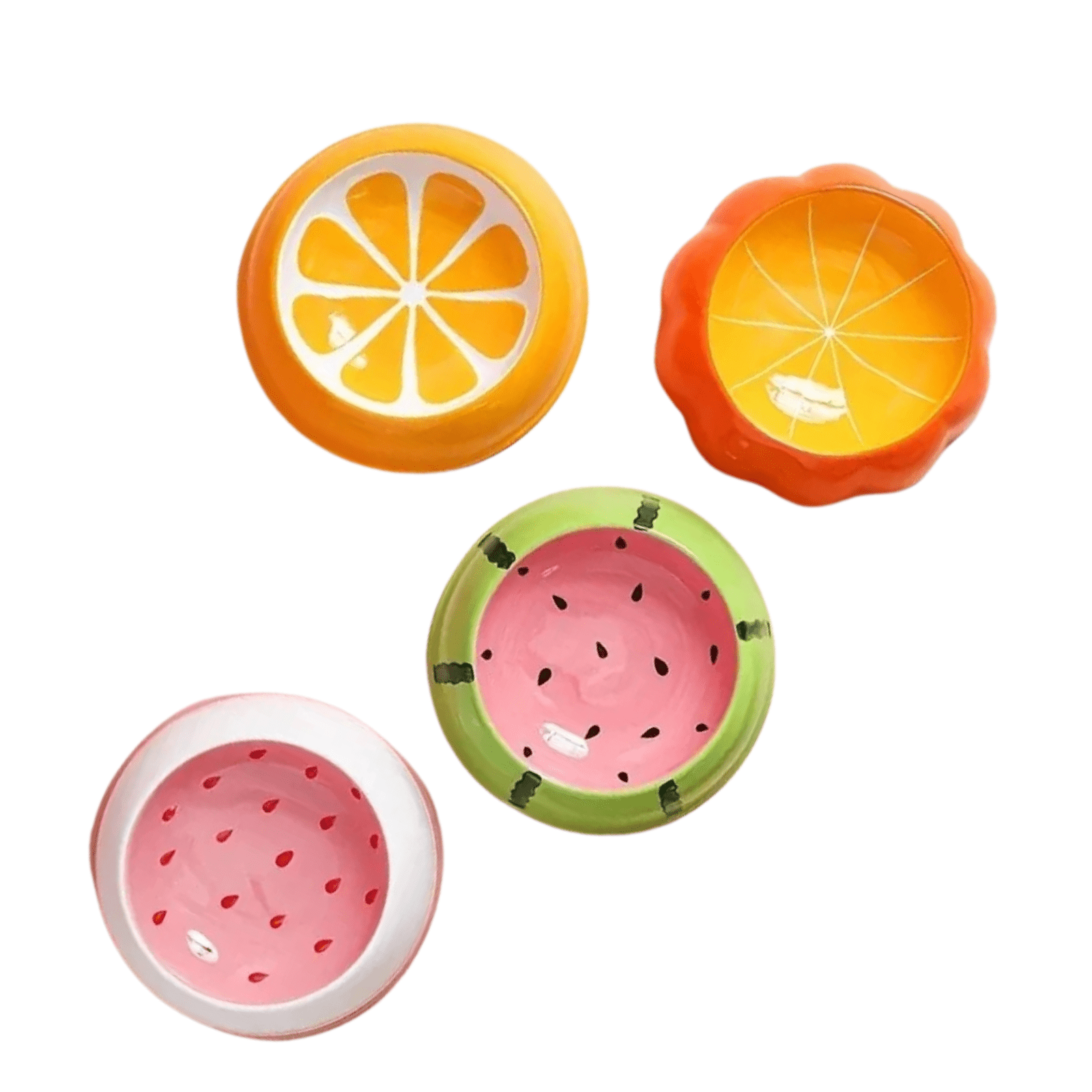 Breng kleur en charme in de eetplek van je huisdier met deze 4 schattige keramische voerbakken in vrolijke fruitvormen zoals aardbei en watermeloen. Speciaal ontworpen voor katten en kleine honden, zijn deze voerbakken niet alleen praktisch, maar ook een echte blikvanger in je interieur.
