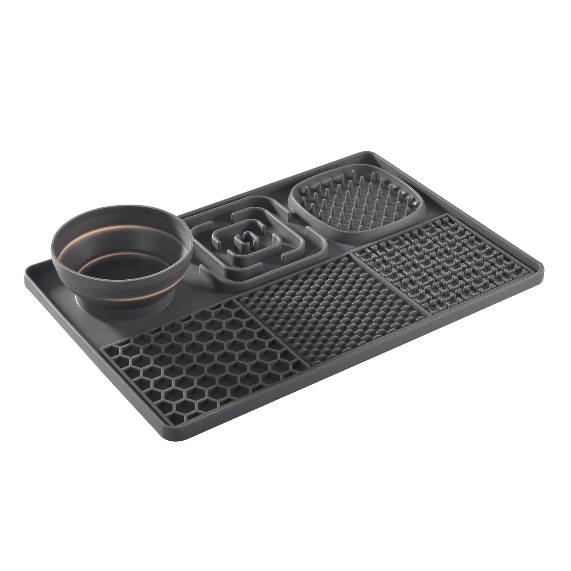 Deze slimme voer- en verzorgingsmat is ontworpen om je hond rustiger te laten eten, verveling tegen te gaan en natuurlijke snuffel- en likreflexen te stimuleren. Ideaal voor op de vloer of in bad.