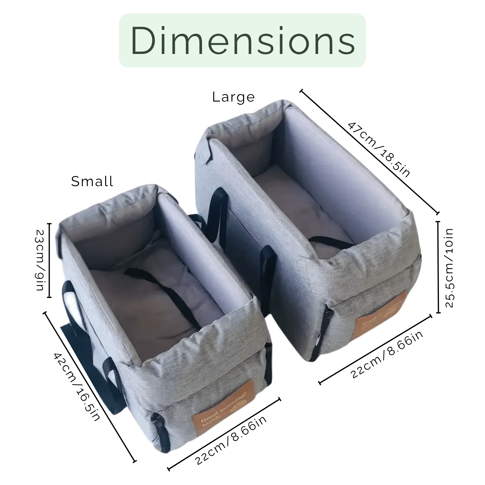 - Kies tussen 2 maten: klein (42 x 22 x 23 cm) of groot (47 x 22 x 25,5 cm)