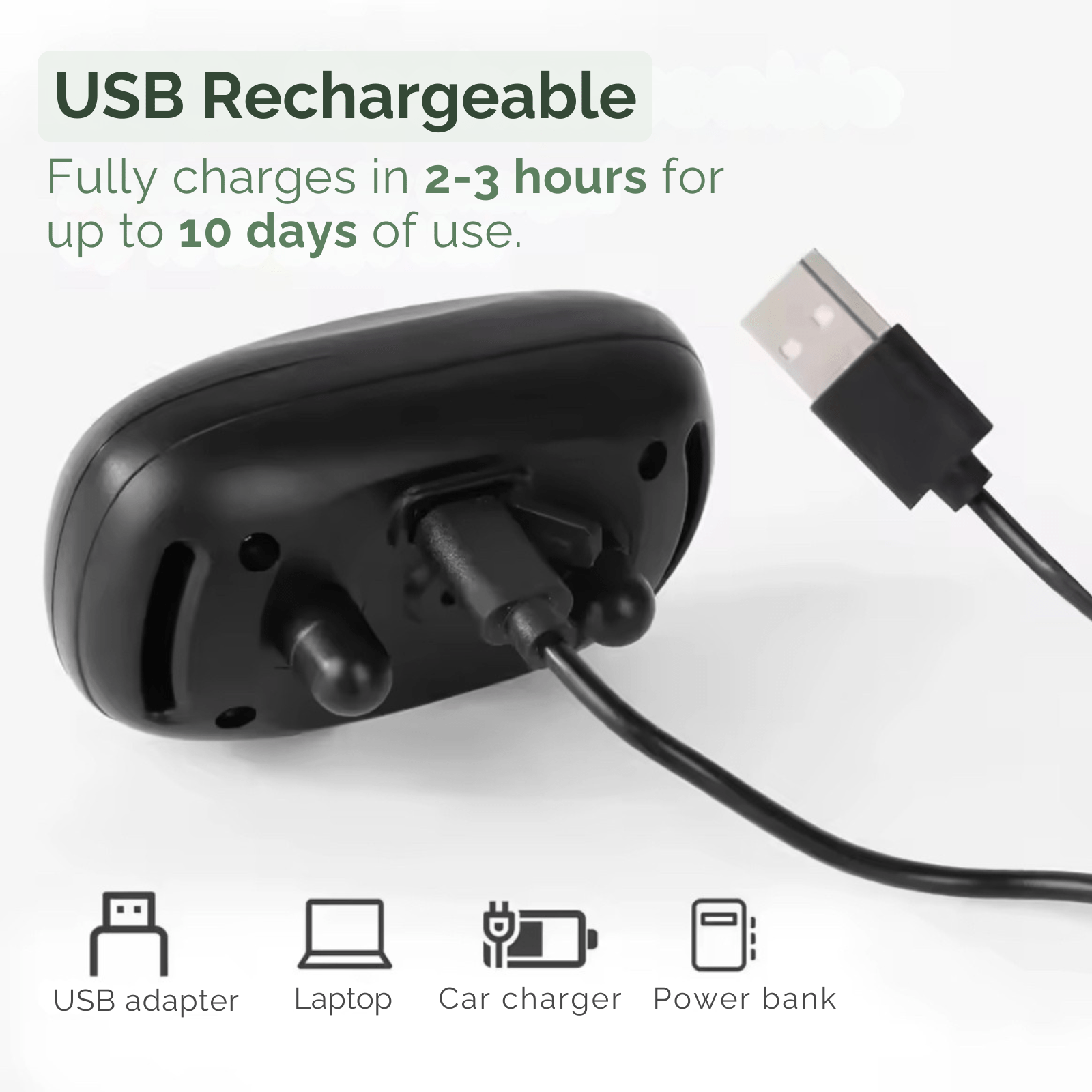 - Oplaadbaar: USB, 300mAh batterij, tot 60 dagen stand-by.