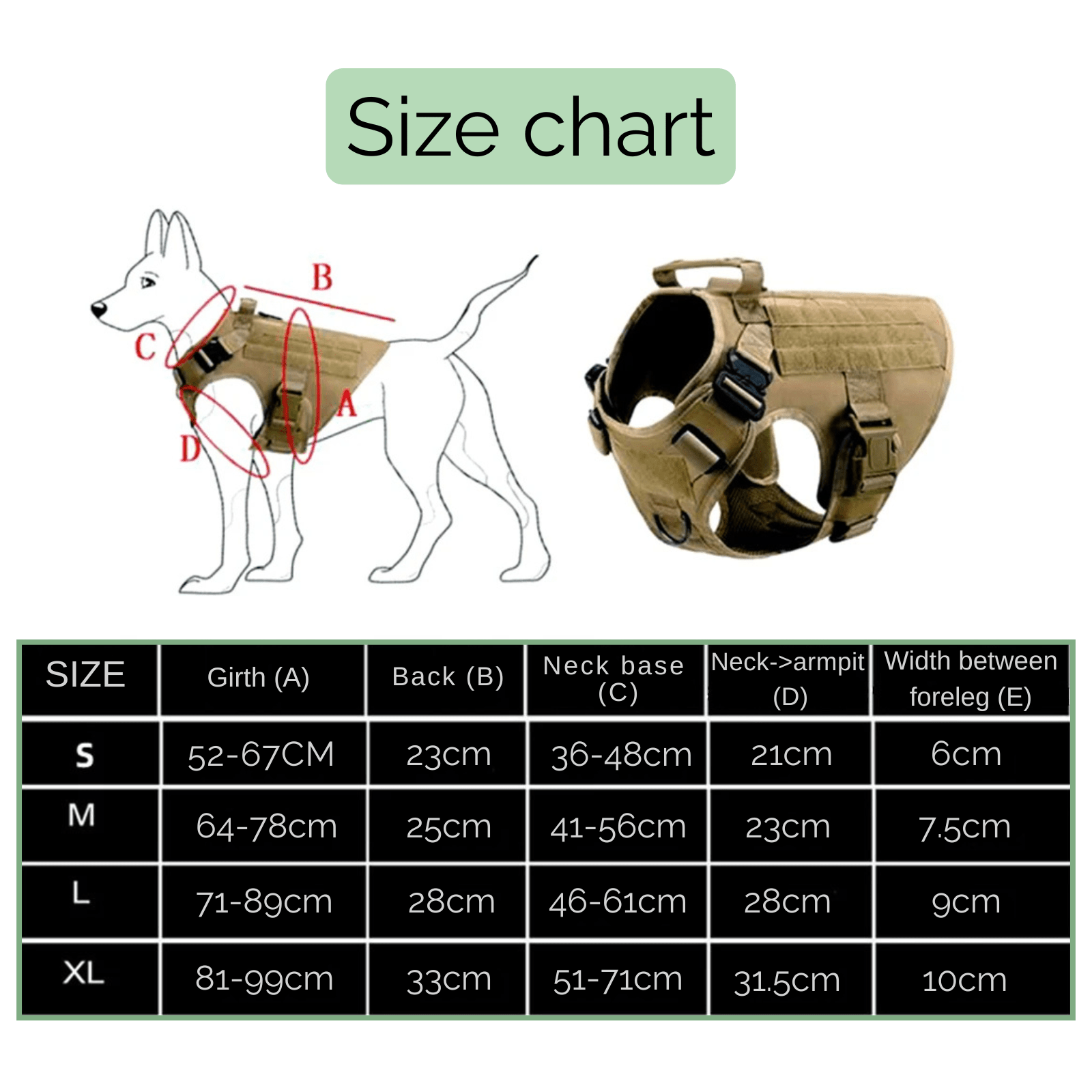 Dit hoogwaardige tactische hondenharnas is ontworpen voor middelgrote tot grote honden zoals de Duitse Herder of Golden Retriever, maar is geschikt voor andere rassen dankzij de verstelbare pasvorm. Of je nu gaat wandelen, trainen, hiken of jagen – dit harnas biedt ultieme controle, veiligheid en comfort.