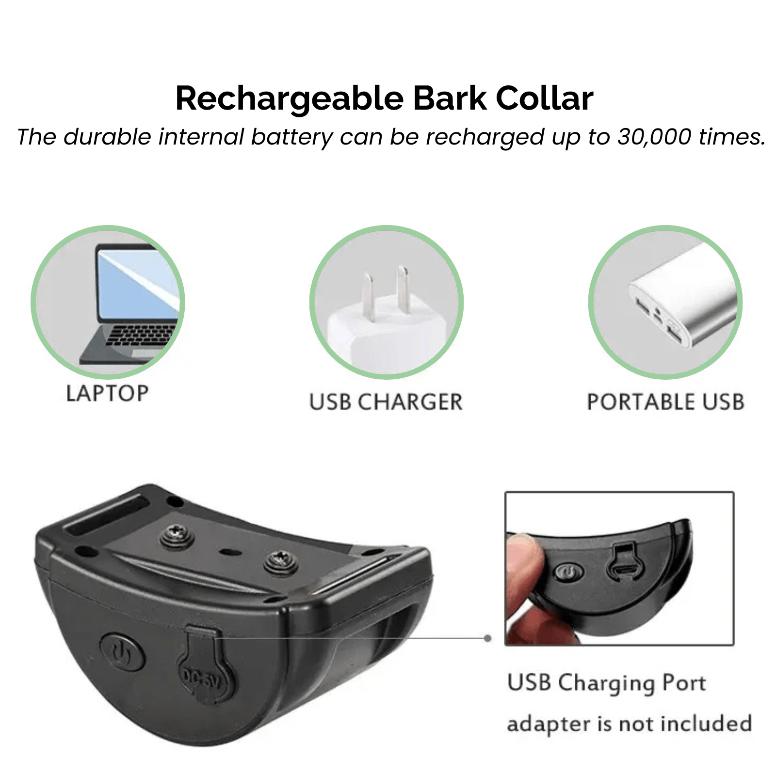 Deze halsband is de perfecte oplossing voor het aanpakken van blafgedrag en is bovendien energiezuinig. Houd er rekening mee dat het product geleverd wordt zonder oplaadstekker, je kunt hiervoor elke standaard USB-oplader gebruiken.