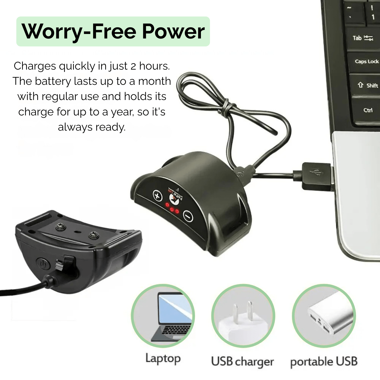 Oplaadbaar en Duurzaam: Geen gedoe meer met het constant vervangen van batterijen. De ingebouwde lithium-polymeer batterij is oplaadbaar via USB en werkt na slechts 2 uur opladen tot wel 60 dagen lang. Dit maakt de halsband energiezuinig en milieuvriendelijk.
