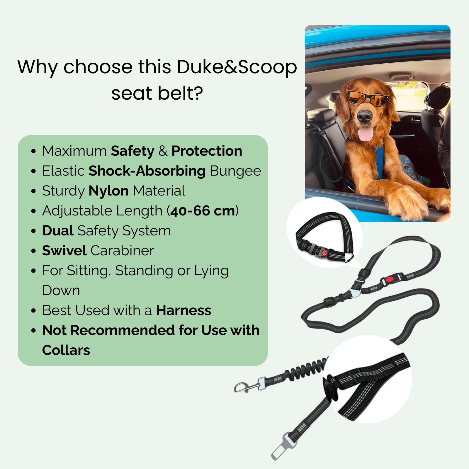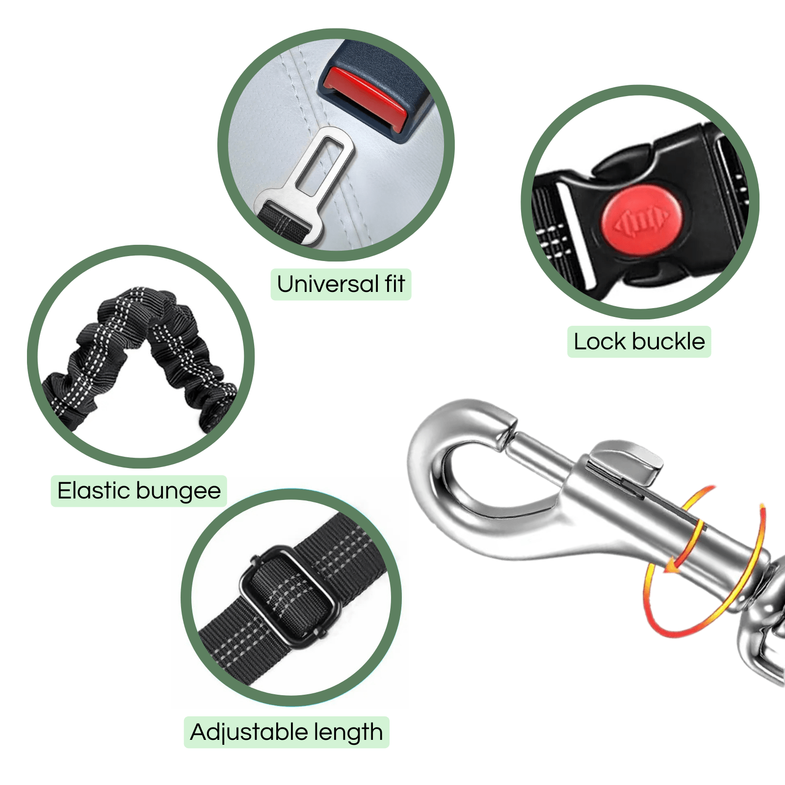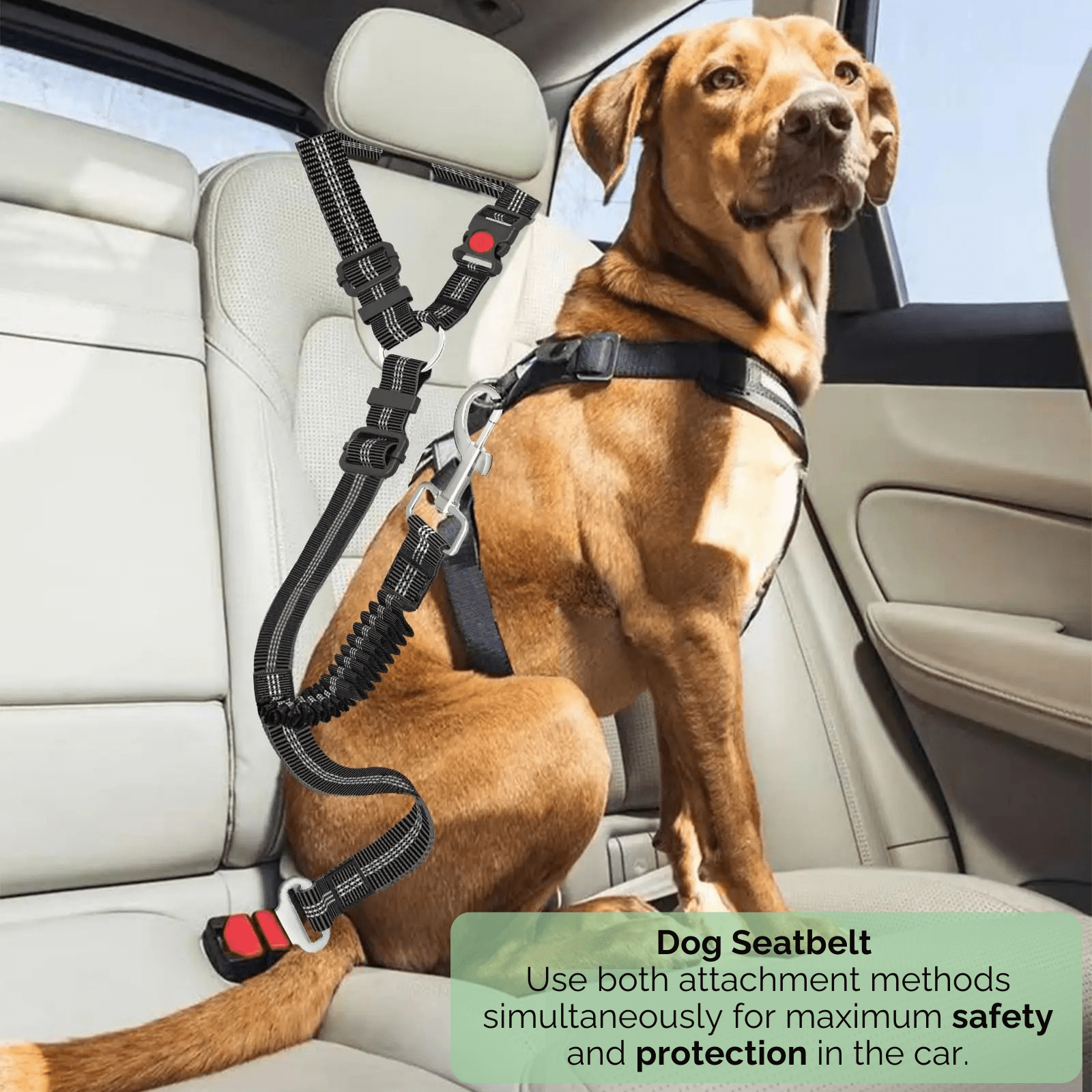 Deze geüpdatete hondengordel is ontworpen voor maximale veiligheid en voorkomt dat je huisdier losraakt bij plotselinge stops of bochten. Dankzij het dubbel beveiligingssysteem blijft je hond veilig, zelfs als één bevestiging losraakt.