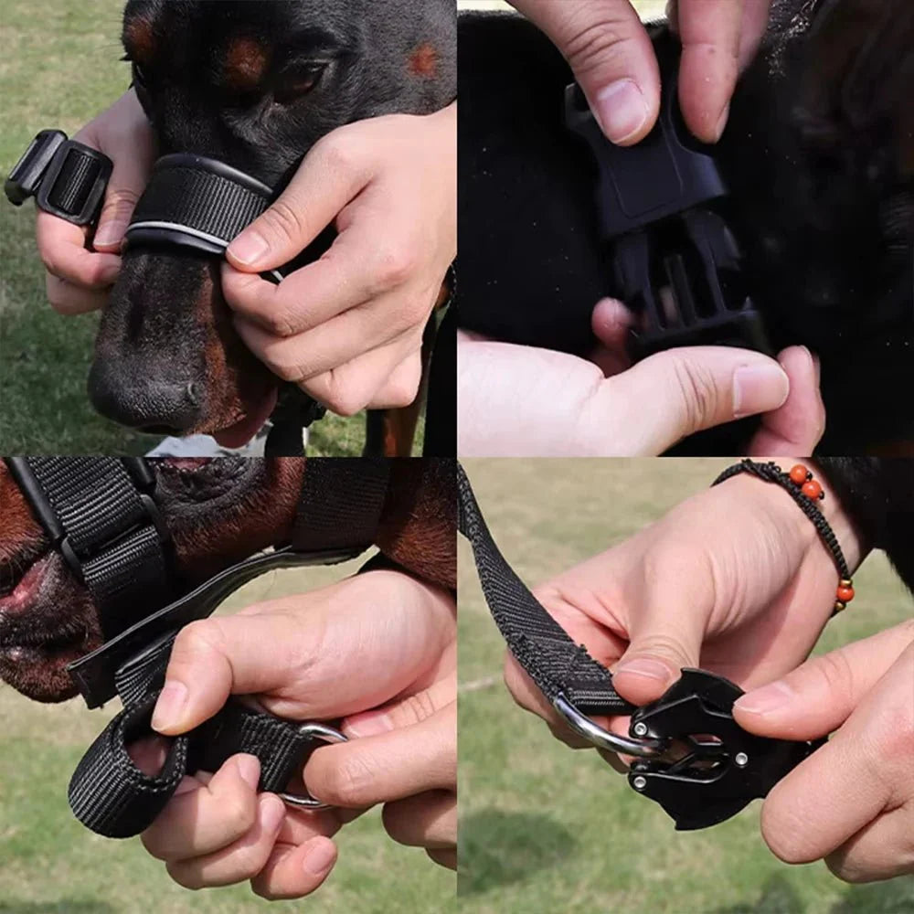 Flexibele pasvorm: De verstelbare gesp zorgt ervoor dat je de muilkorf precies kunt aanpassen aan de verschillende vormen van hondenrassen. Het past zich perfect aan de kop van je hond aan, wat bijdraagt aan een comfortabele ervaring zonder belemmering.