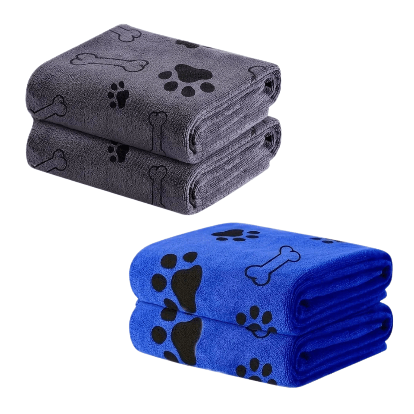 Sneldrogende Microvezel Handdoeken (2-pack, 60x100cm, kleur naar keuze): Deze superabsorberendehanddoeken van zachte polyester-microvezel drogen je huisdier snel en effectief af na een bad of natte wandeling. De set van twee is lichtgewicht, wasbaar en herbruikbaar. Verkrijgbaar in grijs of blauw.