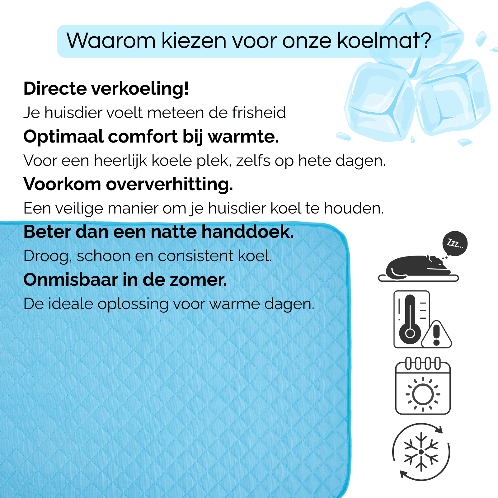 Gun je hond of kat optimale verkoeling en comfort tijdens warme dagen met deze hoogwaardige zelfkoelende mat van ijszijde. Ideaal voor thuis, onderweg of op reis – deze mat is licht, compact op te vouwen en eenvoudig mee te nemen. Dankzij het innovatieve zelfkoelende materiaal blijft de mat koel en fris zonder water, elektriciteit of koeling, waardoor je huisdier altijd een aangename en veilige plek heeft om te rusten.