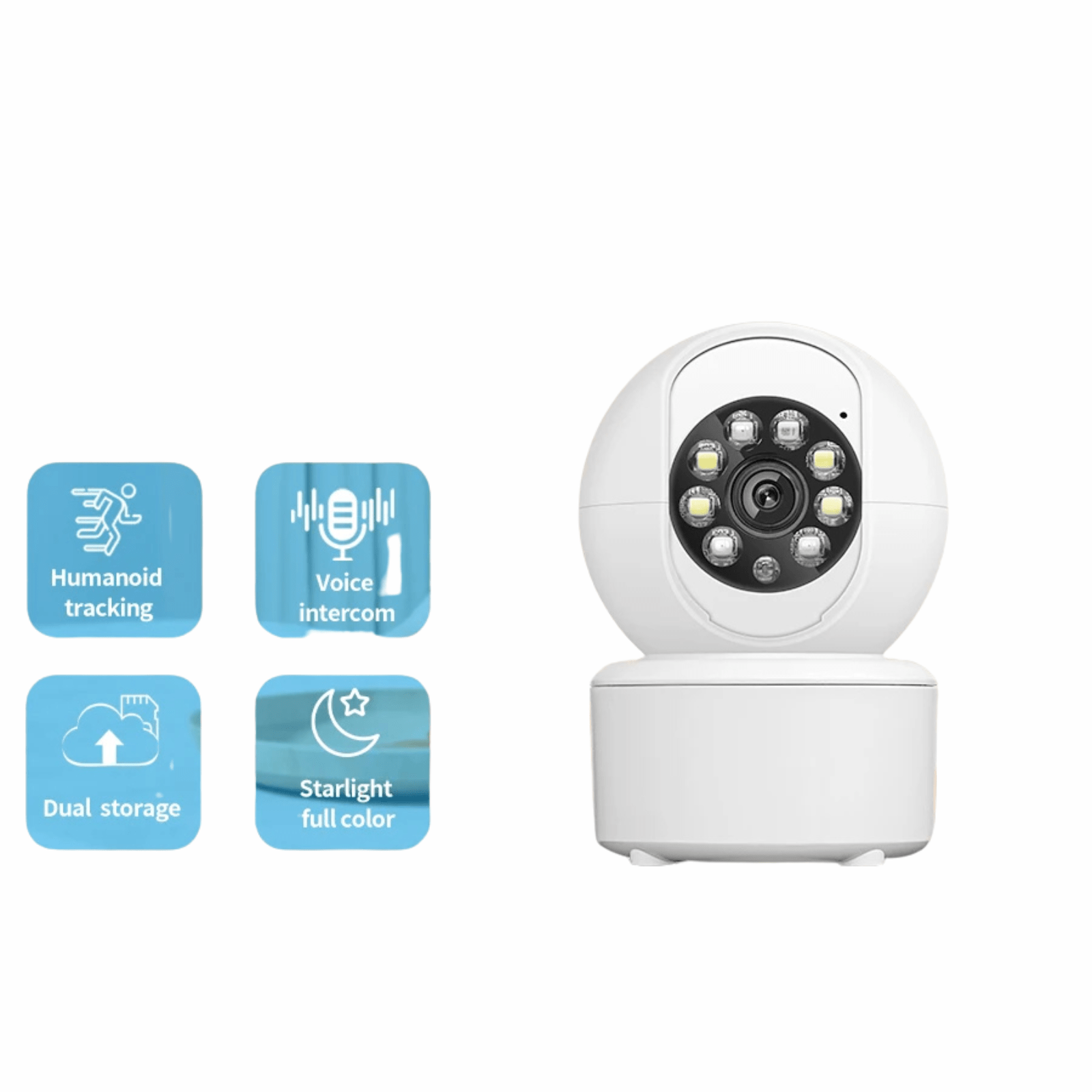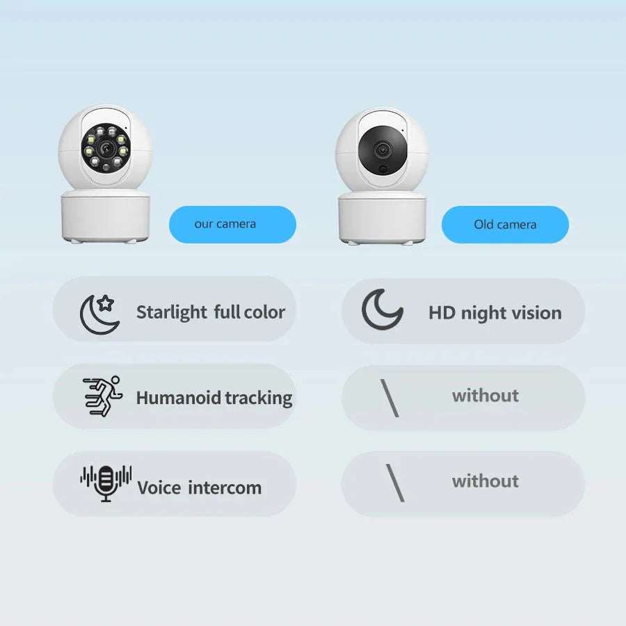 Houd altijd en overal een oogje in het zeil met deze slimme 1080P WiFi beveiligingscamera. Dankzij de automatische trackingfunctie en het haarscherpe full-color nachtzicht weet je precies wat er thuis gebeurt, of je nu je huisdier in de gaten wilt houden of een babyfoon nodig hebt.